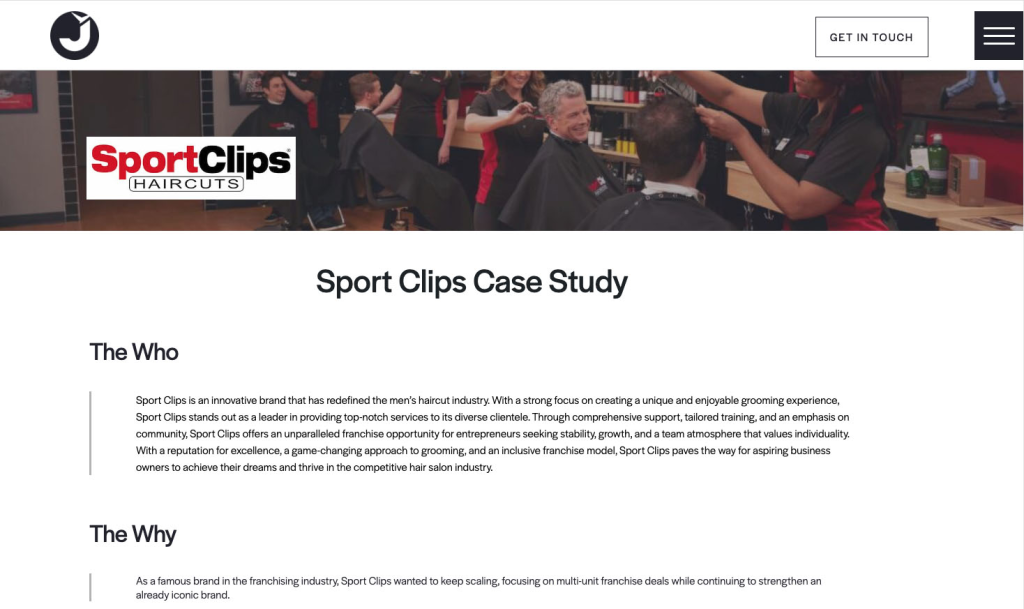 Brand J’s work with SportClips is a superb example of a case study that really works. The marketing business clearly outlines how it helped SportClips obtain more leads and open new stores in less than 450 words. The write-up is short, but it gets the point across really well. It outlines the particular tactics that were employed, why they were chosen, and how the results may be measured. The film that goes with it makes it even better by giving a human touch and making it easier to relate to the success story. This case shows how facts and stories can work together to establish trust and explain how things really function.