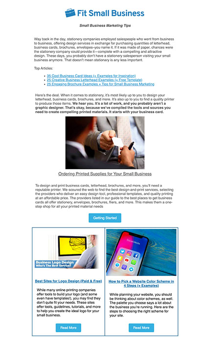 2. Fit Small Business ((Email newsletters)