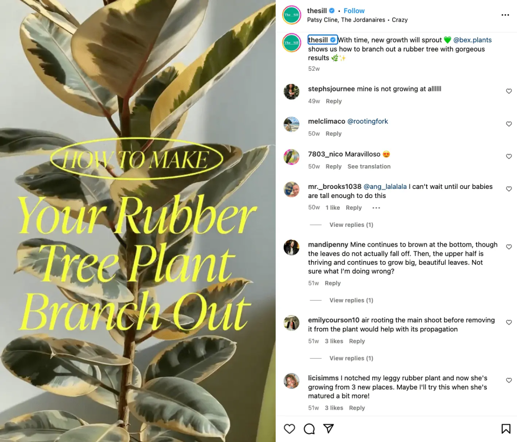 The Sill, a company that sells indoor plants and gardening tools, came up with a clever and real way to connect with its fans on social media. The team didn’t just respond to comments when they saw that a lot of followers were asking for plant care advice. They listened, learned, and used those questions as inspiration.