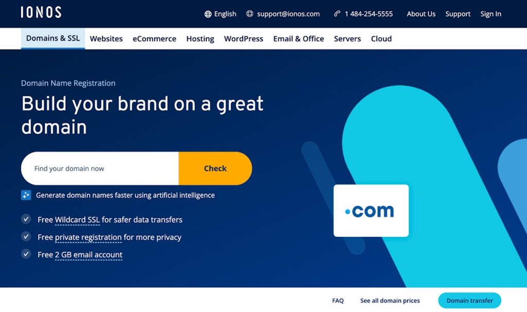 With IONOS, you can get a domain name for roughly a dollar in the first year. This is an excellent choice for folks who want to make a website but don’t want to spend a lot of money. A lot of their services come with handy extras, such as email accounts and SSL certificates. If you want more than just a domain name, you need them. Their customer care is courteous and quick to help. They help people with their accounts, correct problems, and answer other concerns. IONOS is an excellent choice for people and small businesses that want to be online because it is easy to use and performs well. It has a robust infrastructure and a good name in the corporate sector.