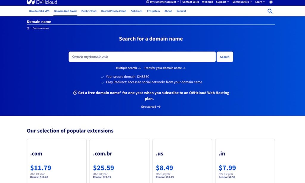 If you want a cheap domain, OVHcloud is a good choice because their costs are usually less than $4. This makes it easier for individuals, new businesses, or small groups to secure a professional domain name without going over their budget. OVHcloud also includes excellent security features that can help keep your data and website safe. It’s easy to manage your domains and services on this platform because it’s so simple to use. If you want to start or extend your online presence, OVHcloud is a smart and safe solution. It has an excellent name in all of Europe and treats its customers well.