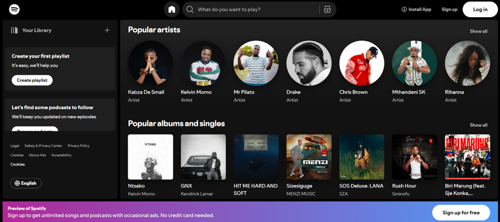 - Clear value proposition: Spotify makes it clear to visitors right immediately what they get: a huge library of music, podcasts, and personalized suggestions. The message is concise, simple, and gets straight to the point.